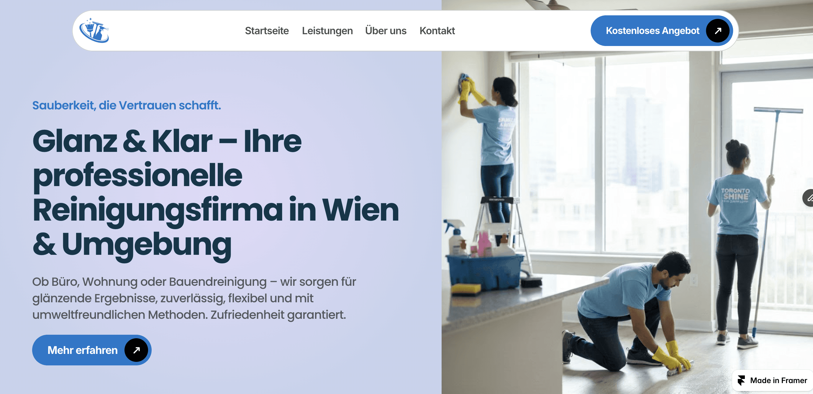 Neue Website für Glanz & Klar in Wien. Mobiloptimiert, übersichtliche Leistungsseiten, Kontaktformular und SEO-Grundlagen. Fokus: lokale Sichtbarkeit und direkte Kundenanfragen.